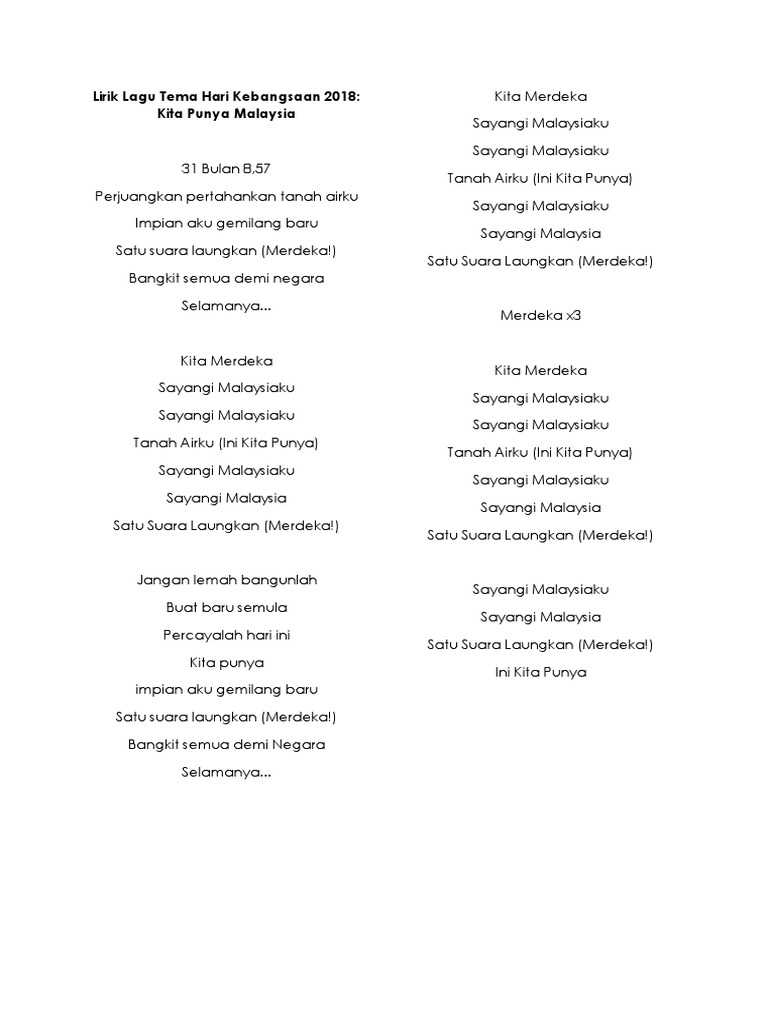 Lirik Lagu Tema Hari Kebangsaan 2018 Pdf